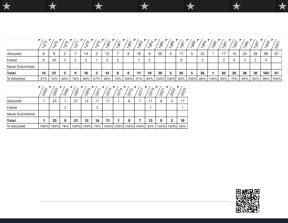 ![]() 2025 Constitutional Amendments Voter’s Guide © 2025 A qr code with a star in the middle AI-generated content may be incorrect. Download Digital Copy Compiled By Darren York © 2025 txconstitutionalamendments.org ![]() This Voter’s Guide is a compilation of publicly available information from the referenced sources for voter educational and informational purposes only. This guide is copyrighted for commercial purposes only. This guide is free to use, copy and distribute for the sole purpose of voter education and information. This guide if used, copied or distributed must be done free of charge regardless of the medium that it is provided, printed or electronic). For questions, feedback, request or to report unauthorized use or distribution of this guide, please contact Darren York at //[email protected]// . © 2025 by Darren York for 2025 Constitutional Amendments Voter’s Guide Copyright and Permitted Use © 2025 2 ![]() DIGITAL VERSION This Voter’s Guide is available in a digital PDF version. In the digital version the QR codes are hyperlinked to the source data/information unless a text URL link is provided in conjunction with the QR code. PRINTER VERSION This Voter’s Guide if printed, provides QR codes for all references to source data/information for the user’s ease of use, to provide easy digital access to the source data/information. DATA / INFORMATION The data/information provided in this guide is sourced from publicly available information with the primary sources being provided from the Texas Constitution and Legislative Records accessed through //Texas Legislature Online// . ORGANIZATION The Guide is organized to provide detailed information on each amendment proposition. At the end of the detailed section is a reference summary to provide legislative links for fiscal notes, bill analysis, and an enrolled bill summary. A second summary is provided with links for the full text versions of the joint resolutions as well as any associated enabling legislation. The Guide concludes with a Proposition Notes section that can be printed, completed and used as a voting memory aid based when the user cast their ballot. About This Guide © 2025 3 ![]() How Is The Texas Constitution Amended? ……………………………. The History of the Texas Constitution & Amendments ……………. Voting Information …………………………………………………………… Propositions Voter Information Proposition 1 …………………………………………………………………… Proposition 2 …………………………………………………………………… Proposition 3 …………………………………………………………………… Proposition 4 …………………………………………………………………… Proposition 5 …………………………………………………………………… Proposition 6 …………………………………………………………………… Proposition 7 …………………………………………………………………… Proposition 8 …………………………………………………………………… Proposition 9 …………………………………………………………………… Proposition 10 ………………………………………………………………… Proposition 11 ………………………………………………………………… Proposition 12 ………………………………………………………………… Proposition 13 ………………………………………………………………… Proposition 14 ………………………………………………………………… Contents © 2025 4 6 7 12 13 14 16 18 20 22 24 26 28 30 32 34 36 38 40 ![]() Proposition 15 ………………………………………………………………… Proposition 16 ………………………………………………………………… Proposition 17 ………………………………………………………………… Additional References ……………………………………………………… By Proposition (Fiscal Notes, HRO Analysis, Enrolled Summary ….. By Proposition (Joint Resolution Text & Enabling Legislation ……….. All Propositions ………………………………………………………………. Secretary of State Ballot Order (English/Spanish) Secretary of State Proposition Explanatory Statements (English/Spanish) BallotPedia Proposition List / Details Voter’s Notes ………………………………………………………………….. Contents © 2025 5 42 44 46 48 48 49 50 51 ![]() How Is The Texas Constitution Amended? 1 2 The Texas Legislature must pass a joint resolution proposing the constitutional amendment with a two-thirds majority vote in both the Texas House of Representatives (100 votes) and the Texas Senate (21 votes) Once the joint resolution is passed, the proposed amendment is then submitted to Texas voters for approval in a special election (typically in November of odd numbered years). The amendment becomes part of the constitution if it receives a majority of the votes cast. Unlike bills, joint resolutions do not require the governor's signature and are filed directly with the secretary of state. The Texas Two Step © 2025 6 ![]() The History of the Texas Constitution and Its Amendments The 1876 Texas Constitution, the fifth since statehood, had 289 sections organized into 17 articles. Over the years, 234 new sections have been added, while 66 of the original sections and 52 of the added sections have been removed, so that the Texas Constitution today has 405 sections. Since 1876, the legislature has proposed 714 constitutional amendments. Of those amendments, 530 have been approved by the electorate, 181 have been defeated, and 3 never made it to the ballot. //https:%%//%%www.tlc.texas.gov/docs/amendments/c