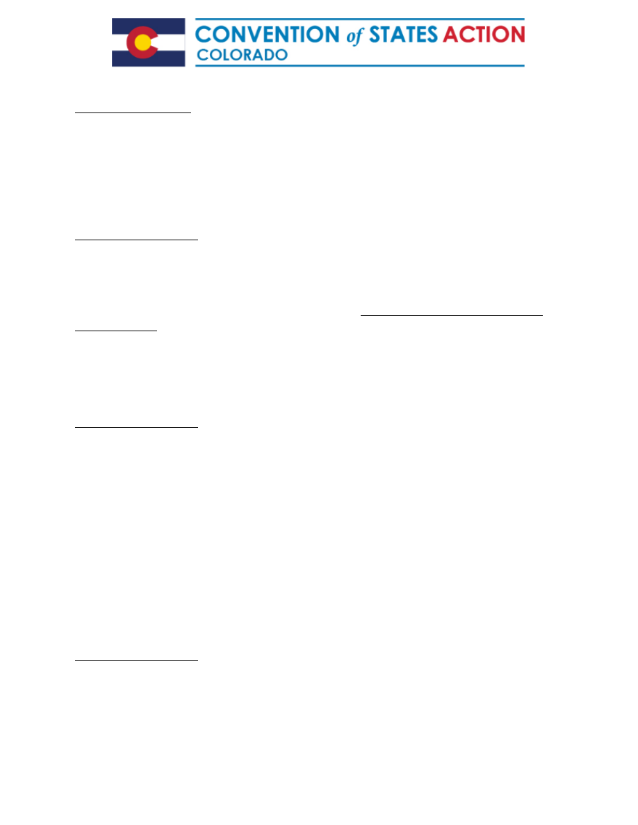 ![]() 1 Answering False and Incomplete Statements about an Article V Convention Purpose and Introduction. The Article V convention is strongly opposed by several different groups and political entities. In particular, Common Cause has published a series of statements with the intent to deceive and misinform Colorado State Legislators. Colorado Common Cause opposes a call for a constitutional convention, regardless of the amendment being proposed, for the following reasons: 1. THREAT OF A RUNAWAY CONVENTION : There is nothing in the Constitution to prevent a constitutional convention from being expanded in scope to issues not raised in convention calls passed by the state legislatures, and therefore could lead to a runaway convention. Colorado COSA Response. It will not be a constitutional convention. It will simply be a convention to propose amendments to the U.S. Constitution as described in Article V. In 11 of 12 state commissions to call a convention in 1787, there was the charge to develop a more “adequate” federal government / constitution. Thus, there was an inherent charge to develop a government that was better than the Articles of Confederation, and the 1787 convention remained within the bounds of these state commissions. The current state applications to call an Article V convention are “limited to proposing amendments to the U.S. Constitution.” It is a much smaller scope than the 1787 convention. 2. LACK OF CONVENTION RULES : There are no rules governing constitutional conventions. A constitutional convention would be an unpredictable Pandora’s Box; the last one, in 1787, resulted in a brand-new Constitution. There’s a significant danger that opponents of certain civil liberties could change the scope of the convention and undermine basic rights long protected by the Constitution. Colorado COSA Response. Article V does not describe how the convention should be conducted just like Article I does not describe how the U.S. Congress conducts its legislative procedures. U.S. Congress simply developed its own legislative procedures based on the common historical practices of the day. The Article V convention rules will be very similar to legislative rules established in many of the state legislatures. For example, Colorado Senate Rule 40 (Parliamentary Authority) states the “Mason’s Manual of Legislative Procedure shall govern the Senate,” and a vast majority of the 50 state chambers have also adopted it. Finally, the 1787 convention did not allow a Bill of Rights to be introduced by some delegates to become part of the new constitution because it was beyond the scope of the states’ commissions. Thus, any discussion related to changing individual rights (e.g., freedom of speech) at the Article V convention will also be beyond its scope just like the 1787 convention. 3. UNCERTAIN RATIFICATION PROCESS : A convention could re-define the ratification process (which currently requires 38 states to approve of any new amendments) to make it easier to pass new amendments, including those considered at the convention. This happened in 1787, when the convention changed the threshold necessary for ratification. Colorado COSA Response. From September 1787 to March 1788, all 13 state legislatures approved the new methodology that required 9 of 13 states to ratify the new Constitution through a state level convention as stated in Article VII, and it was necessary to approve the new methodology before final ratification. Eventually, all 13 states did ratify the new Constitution. When a convention meets to propose amendments to the Constitution, the proposed amendments still have to be ratified by three fourths of the states (38 of 50). ![]() 2 4. INFLUENCE OF SPECIAL INTERESTS : An Article V convention would open the Constitution to revisions at a time of extreme gerrymandering and in an environment of unlimited political spending. It could allow special interests and the wealthiest to re-write the rules governing our system of government. Colorado COSA Response. The Article V convention process includes several safeguards to protect the integrity of the Constitution. Any proposed amendments must be ratified by three-fourths of the state legislatures or state conventions, ensuring a broad consensus that is difficult for special interests to manipulate. Additionally, the commissioners to the convention are chosen by the states, and there are currently 12 states with bills or resolutions that establish criminal penalties on their chosen commissioners for violating any authorities / instructions granted to them. 5. THREAT OF LEGAL DISPUTES: No judicial, legislative, or executive body would have clear authority to settle disputes about a convention, opening the process up to chaos and drawn out legal disputes that threaten the functioning of our democracy and economy. Colorado COSA Response. The Article V convention process is designed with clear constitutional guidelines that provide a structured path for amendments. While legal disputes may arise, the Constitution outlines specific mechanisms to address and resolve these issues efficiently. For instance, Article V requires that any proposed amendments be ratified by three-fourths of the state legislatures or state conventions. Additionally, the Supreme Court has the authority to interpret constitutional disputes, providing a judicial check on the process. These safeguards ensure that the potential for legal challenges do not overshadow the critical need for states to propose necessary amendments. 6. APPLICATION PROCESS UNCERTAINTY: There is no clear process on how Congress or any other governmental body would count and add up Article V applications, or if Congress and the states could restrain the convention’s mandate based on those applications. Colorado COSA Response. The Clerk of the United States House of Representatives maintains Article V convention applications ( https://clerk.house.gov/SelectedMemorial ), and it counts
