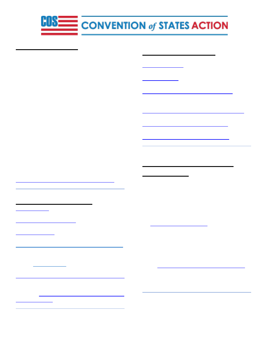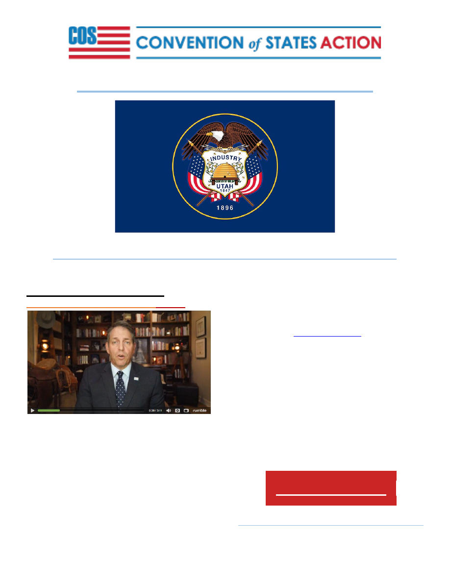 ![]() Page 1 of 6 August 2022 Utah Pioneer Patriots Newsletter Let’s Go Team Utah!! ______________________________________________________________________ COS National Update: TYRANNY RESPONSE TEAM - ALERT The FBI raid of a former president’s home is horrifying! But what’s also terrible is what we’ve seen in the last week…NOTHING! Do-nothing Republicans and Democrats alike release weak statements and then go back to their old ways. I’m tired of it, and I know you are too! ACTIONS speak louder than words , and we’re turning up the heat. Thanks to tremendous donors, volunteers and brave American patriots, we have robustly engaged our grassroots army to launch a campaign against a shameful FBI . The time for action is NOW . We must gain the support of our elected officials to address the out- of-control FBI. By clicking this link , we connect you directly with your members of congress as well as your members of the state legislature. Demand they act to totally End the FBI today! COS is the ONLY organization in the country that’s massive enough to fight this level of corruption - and we’re activating to fight this battle on all fronts. We’re calling all supporters to stand with us NOW in the fight. They think no one can stop them but we’re here to PROVE THEM WRONG. Mark Meckler President Convention of States Action **Let's END the FBI** ____________________________________ ![]() Page 2 of 6 COS National Continued: Would you like to sign the COS Open Letter to the States ? We wanted to let you know about two modifications that have been made to the post: 1 .- A link was added to the end of the post to allow anyone to sign the Open Letter . Our hope is to gather as many signatures as possible and to report the number of signatures in the full-page ad planned for Article V Day, September 15 . To that end, please share the blog post far and wide to gain as many signatures as possible. 2 .- A bullet list was added after the first paragraph to restate the founding principles found in the Declaration of Independence . We believe that with this addition to the Open Letter more closely parallels the Declaration of Independence with a Preamble, a Statement of Principles , a List of Grievances , and a Conclusion. Be sure to share this with family, friends, neighbors, and volunteers you are working with to spread the word. Please click the link below to review the whole COS Open Letter to the States – and look for the link at the end of the letter where you can sign this letter. Click here to view the Open Letter to the \\ States. _____________________________________ COS National Continued: Conservatives are extremely close to amending the constitution - the left is furious! Listen to this great podcast on @Timcast with Mark Meckler and Rick Santorum discussing Convention of States. https://youtu.be/fCjx0r8-0LA https://youtu.be/fCjx0r8-0LA _____________________________________ ![]() Page 3 of 6 COS Utah August Update: Kanab, Utah – Towne Hall – Thursday, August 25, 2022, at 7:00 pm in the Kanab City Library 374 North Main Street, Kanab City, Utah ARE YOU FRUSTRATED WITH WASHINGTON? Come and discuss with the Convention of States - An Open Letter to the States ~ America’s Future Depends on Your Leadership WE THE PEOPLE of the Convention of States movement declare that the United States government has failed to secure the rights of the American people as called for in the Declaration of Independence. Instead, the federal government, dominated by career politicians, has usurped power from the people and the states over many decades, effectively dismantling the principles of federalism that the founding fathers forged into the U.S. Constitution. We now issue this Open Letter to the States to communicate our grievances with the federal government: PLEASE join us to discuss: - Thursday, August 25 at 7:00 pm, Kanab City Library, 374 N. Main St., Kanab, Utah ____________________________________ Monthly Spotlight: This guest spotlight is my dear sister-in-law that has inspired me to join and get active with COS – Name: Sherry Peterson COS Title: Kansas HD-78 District Captain and Regional Block Walking Captain City raised in: Grand Junction, Colorado City current living in: Olathe, Kansas Favorite Hobbies: Reading Front and center – Sherry Peterson - What brought you to COS (Your Why): I saw our country headed in a negative direction. I complained, a lot, and realized that complaining wasn’t helping. A friend introduced me to COS and I decided that this was something I could DO. Inspirational thought: “It is impossible to rightly govern a nation without God and the Bible.” George Washington. More about You: Since the end of April 2022, we in Johnson County Kansas have been anxiously engaged in Block Walking. We have a group of dedicated patriots who have walked in various house districts every week since the end of April. We knock doors, educate homeowners, and ask them to sign the petition. The purpose is to petition them and build with the hopeful result of flipping a district representative ’s ![]() Page 4 of 6 opinion to our favor, so that when the Kansas Legislature votes again on the COS resolution in 2023 it will finally pass. It was voted on in 2021 and 2022. We had a majority vote in favor both times, but in Kansas, the only state in the union, requires a 2/3 majority to pass legislation. We’ve added several hundred petitions, worked with candidates who are favorable and hold district meetings that address how COS provides solutions to issues such as election integrity, educational choice, and the truth about climate change. I’ve spent time at the Kansas State Capitol. I’ve met Mark Meckler and Rick Santorum. That was fun. I’ve made new friends and am impressed and inspired by the number of patriots who look to God for solutions to our nation’s problems. _____________________________________ Last Month Event: Convention of States Utah had a booth at - A