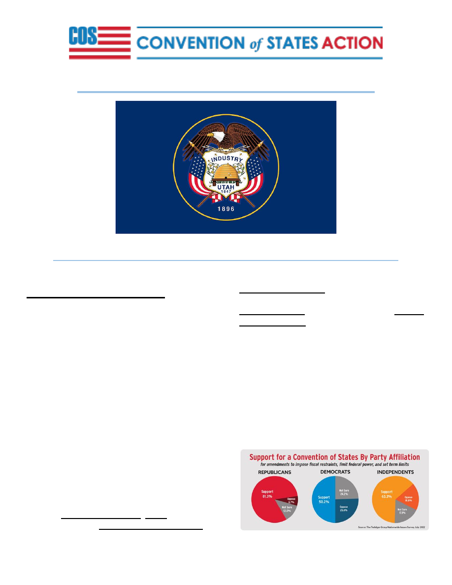 ![]() Page 1 of 7 March 2023 Utah Pioneer Patriots Newsletter Let’s Go Team Utah!! ______________________________________________________________________ COS National Update: Our National COS team has been crisscrossing the nation for grassroots rallies, meetings with legislators, and votes on the COS Resolution across the country. So much activity is happening, it’d be impossible to send out updates on every victory, so we wanted to send out a few key progress updates. In the past 7 weeks, we’ve filed the COS Resolution in eighteen states. Seventeen states have assigned our resolution to committee, six states have held committee hearings with good outcomes for COS. Keep in mind, in order to fully pass in a state, it requires securing sponsors , filing the resolution, getting assigned to a committee , passing committees in both the House and Senate, sometimes including additional subcommittees , and then passing the floor in both chambers. It is a long and rigorous process, but we’ve already secured 19 passed states. Experience is on our side. And more importantly, the American people are on our side. As of today, we have over 5.4 million supporters, with volunteers that span political parties and every single state house legislative district in the nation. That is unheard of. ![]() Page 2 of 7 Our state teams are organizing block walking , telephone banking , yard sign campaigns , and hosting rally days where activists can deliver petition signatures and have one-on- one meetings with their state legislators, and they are working around the clock to execute on their individualized state victory strategies. Meanwhile, Mark Meckler , Mike Farris , and Rick Santorum are traveling from state to state to provide expert testimony before votes, rally the grassroots, and have intimate one-on- one meetings with state legislators. We are leaving no stone unturned. In the coming days, Kansas is preparing for an important vote in the Senate. Rick Santorum will fly to North Carolina to meet with legislators. Next, Mark Meckler and Mike Farris will head to North Carolina for town hall meetings. Meanwhile, Maryland is preparing for a vote in the Senate Committee, Indiana is hosting a rally at the capitol, and Rhode Island will have a House Committee hearing. Things are looking good in Iowa , North Dakota , Oklahoma , New Hampshire , and Texas . For America, The Convention of States Team __________________________________ Coming Up in COS Utah: COS Utah Team will have a booth at: The Firm Foundation Expo April 6, 7, & 8 2023 - 9:00 am to 8:00 pm Mountain America Expo Center 9575 South State Street Sandy, Utah Please come help us at the COS booth for this conference. Our participation in this conference is under their topic of The Constitution. Please click this Sign-up Genius link for the dates and times to volunteer that works best for you: https:%%//%%www.signupgenius.com/go/10C0F4AAAAC2\\ CA4FFCF8-firm We will have 3-4 tickets that we can share for our booth #60. You can stay for the full day without charge if you volunteer. _____________________________________ ![]() Page 3 of 7 Legislative Liaison: On Friday, March 3, the Utah legislature ended the legislative session for 2023. But you can still, as a self-governing citizen of the state of Utah, contact your legislators about legislation that matters to you. Below we have outlined some bills that our COS team has been tracking. If you are interested in contacting your legislators about any of these pieces of legislation, you can find your House Representative and Senator's contact information here . • H.B. 464 School Materials Amendments - This bill amends provisions regarding student access to pornographic or indecent materials within the public education system. • H.B. 467 Abortion Changes - This bill modifies provisions related to abortion. • H.B. 297 Victim Services Amendments - This bill modifies provisions related to certain victims of sexual crimes including an abortion based upon rape or incest. • H.B. 253 Federalism Commission Amendments - Allows the Utah Federal commission to refer unconstitutional acts to interim committees. • H.B. 21 Open and Public Meetings Act Amendments - Freedom of Speech Amendment: This bill requires a public body holding an open meeting to allow a reasonable opportunity, for the public to provide verbal comment at the meeting, with certain exceptions; and requires a public body to adopt a resolution, rule, or ordinance allowing public comment in a public meeting. Thank you for your continued support of Convention of States in Utah! If you're interested in getting more involved with our team, please consider volunteering today For Liberty, Nichole Klosowiak Legislative Liaison, COS Utah Nichole.Klosowiak@COSAction.com < > by Nichole Klosowiak _____________________________________ Utah Update: Have you noticed that you might be in a new Utah House District ? All United States Representatives and state legislators are elected from political divisions called districts. Redistricting is the process by which new congressional and state legislative district boundaries are drawn. The states redraw district lines every 10 years following completion of the United States census. The federal government stipulates that districts must have nearly equal populations and must not discriminate on the basis of race or ethnicity. To look up to see if you have a new Utah House District and see who your legislator is check out this site: **District Map (utah.gov) ** _______________________________ ![]() Page 4 of 7 Last Month Events: Operation Equip - With Joanne Martin The Utah Leadership team went through Operation Equip. It started the last Wednesday in January and went thru February! Class #1 – Was on Slack (the internal messaging system COS uses) Basics and the COS App. Class #2 – Was on the Follow-Up Tools. Class #3 – Was a conversation with Ginny Rapini and Rick Santorum on “How to best communicate wit