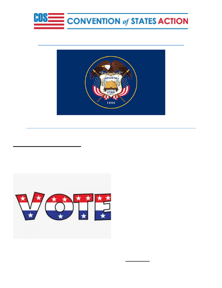 ![]() Page 1 of 7 November 2022 Utah Pioneer Patriots Newsletter Let’s Go Team Utah!! ______________________________________________________________________ COS National Update: COS Volunteers Elected to Several Offices Nationwide Despite falling short of our loftiest hopes for the 2022 elections, there was still plenty of good news to go around for the Convention of States movement! • Evie Brennan, District Captain for COS Wyoming, was elected to the Wyoming Senate. • Allen Chesser, former Legislative Liaison for COS North Carolina, won his bid to the North Carolina House of Representatives. • Jay Taylor, former Legislative Liaison for COS West Virginia, won his bid to the West Virginia Senate. • Adam Turk, once a District Captain for the COS Kansas team, won a seat to the Kansas House. • Bill Gustoff, former Iowa strategist, won his bid to the Iowa House of Representatives by unseating an opposed legislator. • The Nebraska team was successful in flipping the Norfolk Public School Board. • The Nebraska team was successful in flipping the Norfolk Public School Board. • The Ohio team also helped unseat anti-COS incumbents in the House and Senate! • Sarah Abdouch, former COS Iowa State Director, and Quinn Kotter , former Regional Captain for ![]() Page 2 of 7 COS Utah, are in races that are too close to call at press time. Click here to read more and share the good news! Click here to read additional coverage about our \\ successes. _____________________________________ COS Utah November Update: Utah continues the Convention of States (COS) Culture of Self-governance . Your homework for the month of November: Sign up for the COS Servant Leadership course with Ginny Rapini< > grapini@cosaction.com < >or at least read the book – Servant Leadership by David Kuhnert. Set your SMART Goals: S – Specific : Have you goal be specific. M – Measurable : Able to complete – Quality, quantity. A – Achievable: It is in your control to accomplish. Practical and Realistic. R – Results Oriented: Serves the Organization’s purpose and objective. T – Time bound: Clear target date or deadline for completion. We will discuss your SMART Goals at next Zoom call: Wednesday, December 7 th at 7:00 pm. _____________________________________ Legislative Liaison: Be sure to contact your Legislators - Elected officials represent our community and our interests, so let them know who you are and what you care about! Take time to introduce yourself and your organization to public officials serving your community – including both federal and state representatives. Make an appointment and discuss: 1- Their stance on Convention of States. 2- What Bills they are working on that COS could possibly get behind and support. 3- Notify your District Captain, or Regional Captain, or Legislative Liaison with the results after contacting them. Contact Your Government Official| | Utah.gov Contact the House| | Utah House of \\ Representatives (utleg.gov) Utah State Legislative District Maps (Expires January 1, 2023) District Map (utah.gov) by Nichole Klosowiak and Barbara Metaxas _____________________________________ ![]() Page 3 of 7 Last Month Event: We had a few of our Utah Leaders attend this National Reclaiming Liberty Summit in Orlando, Florida. Glad they could be there to represent our Utah Team!!! William (Bill) Pressgrove Alex Merrill _____________________________________ Monthly Spotlight: Name: Joyce Berry COS Title: Associate Regional Director Passed States City raised in: Born in Huntington, W VA, grew up in Shreveport, LA. Spent much of my life in Texas raising kids – and Florida as soon as the kids were grown and starting their families. City current living in: We live in and are registered to vote in New Port Richey, FL. We also have a home in Burleson, TX a suburb of Fort Worth (we spend about 4 months of the year in TX). Favorite Hobbies: WORK, I love to work with people and COS, we also like to sail but are currently without a boat, reading, making soap, keeping up with my kids, 2 daughters, 8 grandchildren and 10 great grandchildren! What brought you to COS (Your Why): I Had the privilege of working with Tom Coburn (he was still a family practice doctor at the time) in Muskogee, Oklahoma. He was an honest and inspirational person. I followed him through the years as he went to Washington. When I saw that he was involved with COS I knew I had to check it out, did so and ![]() Page 4 of 7 recognized that this was the only thing I COULD do to try to preserve our country for my children, grandchildren, and great grandchildren Inspirational thought: Whether you believe you will succeed or not, you are probably right. This has brought me through many trials and helped me to keep my mind on the goals and moving ahead. More about You: My husband and I celebrated our 60 year anniversary this past summer. I was a teenage bride at the ripe age of 15. I had my oldest daughter 13 months after I got married. My second came along when I was 19. We grew up together. I was asked to leave school (which was very important to me) because I was pregnant – it just wasn’t the thing to do back then. I worked many different jobs as I raised a family, switchboard operator, information operator, repair service operator, receiving clerk for valves and materials for a nuclear plant, and other interesting roles prior to deciding that I wanted to be a nurse. I started as a Licensed Nurse in a one-year program. I continued my education getting my bachelor’s in nursing while I worked full time as a nurse in the hospital, psychiatry, Labor, and Delivery were my primary areas of focus. Once I got my degree, we headed out on our thirty- one’ sailboat for a six-month trip to the Bahamas through the intercoastal waterways from Houston, Texas. These were some of the happiest days of my life. I love the ocean and the life on a boat (we had lived on our boat for over 2 years when we left). My husband decided that