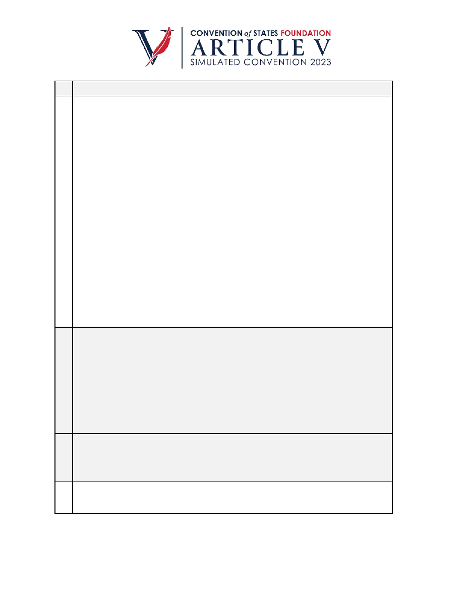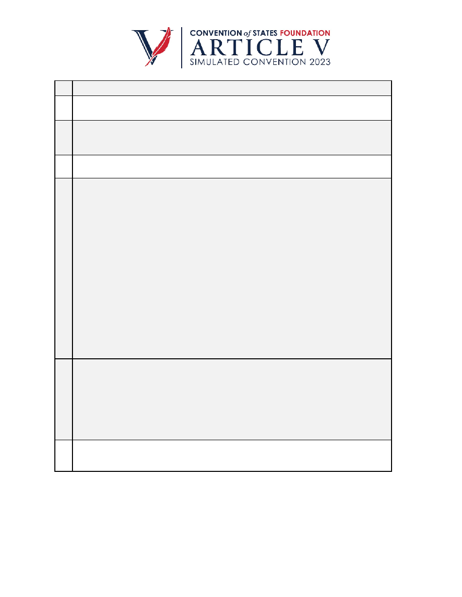 ![]() Grassroots Amendment Proposals to impose FISCAL RESTRAINTS on the federal government The proposals contained herein were submitted by grassroots activists across the nation. They are reproduced here in essentially the same form as they were received, and have not been substantively edited. Inclusion of a proposal does not imply the support of Convention of States Foundation. FISCAL RESTRAINTS ![]() 1 Amendment XXVIII (Draft) To empower state legislatures to override the federal government Section 1. The several state legislatures, by a three-fifths majority vote, shall have the power to: (1) reduce any line item in any appropriations or other spending legislation, (2) repeal, in whole or in part, any law passed by Congress, (3) vacate, in whole or in part, any ruling of the Supreme Court or any inferior federal court, (4) cancel, in whole or in part, any Presidential executive order or guideline, (5) withdraw, in whole or in part, any regulation issued by any Federal agency or department. Section 2. (1) In any action under this amendment, each state legislature shall have exactly one vote, and none of the actions shall be subject to judicial review. (2) Each action shall become effective on the day that the three-fifths-majority requirement is met. More at https://bityl.co/CKhd 2 1. Congress shall adopt a preliminary fiscal year budget no later than the first Monday in May for the following fiscal year and submit said budget to the President for consideration. 2. Should Congress fail to adopt a final fiscal year budget prior to the start of each fiscal year, which shall commence on October 1 of each year, and/or if the President fail to sign said budget into law, an automatic, across the board, 5 percent reduction in expenditures from the prior year’s fiscal budget shall be imposed for the fiscal year in which a budget has not been adopted. 3. Total outlays of the federal government for any fiscal year shall not exceed its receipts for that fiscal year. 4. Total outlays of the federal government for each fiscal year shall not exceed 17.5 percent of the Nation’s gross domestic product for the previous calendar year. 5. Total receipts shall include all receipts of the United States Government but shall exclude those derived from borrowing. Total outlays shall specifically exclude those for the repayment of debt principal. 6. Congress may provide for a one-year suspension of one or more of the preceding sections in this Article by a three-fifths vote of both Houses of Congress, provided the vote is conducted by roll call and sets forth the specific excess of outlays over receipts or outlays over 17.5 percent of the Nation’s gross domestic product for the period of suspension. 7. The limit on the debt of the United States held by the public shall not be increased unless three-fifths of both Houses of Congress shall provide for such an increase by roll call vote. 8. This Amendment shall take effect under for the second fiscal year following its ratification. 3 The 16th Amendment to the United States Constitution is hereby rescinded. This represents complete repeal of the Sixteenth Amendment, returning to the States all responsibilities for direct taxation. The Federal Government may still levy taxes against the many States and Territories on a per capita basis, and may still collect revenue in other, less intrusive ways (e.g., tariffs, excise taxes). This amendment shall take effect October 1st. 202X. 1 ![]() 4 The Federal Reserve Act of 1913 is hereby repealed. The rights and responsibilities relating the minting of Federal monies, as established under Article I, Section 8, are recognized as inherently governmental and not subject to delegation or assignment outside of the halls of Government, and shall be executed via the Executive Branch via the Department of the Treasury under the oversight of the united States House of Representatives. It is further recognized that the rights and responsibilities identified are granted toward the administration and policies of a monetary system, and that such authorities do not allow for the Federal Government to engage in direct banking activity or management. 2 ![]() 5 Amendment to Facilitate Timely Execution of Appropriation/Budget Cycle Section 1. The House of Representatives and the Senate shall submit to the President its jointly approved annual appropriations bill, which shall encompass all federal departments, agencies, and operations, no later than May 15 for the upcoming federal government fiscal year that begins on October 1 of the same calendar year. Section 2. If the House of Representatives and the Senate do not meet the May 15 deadline imposed by Section 1 of this amendment, all individual Members of the House of Representatives and all individual Senators in the Senate shall immediately and irrevocably forfeit all pay and allowances for the period between May 16 and June 15. If the House of Representatives and the Senate still have not submitted a jointly approved annual appropriations bill outlined in Section 1 to the President by June 16, then all individual Members of the House of Representatives and all individual Senators in the Senate shall immediately and irrevocably forfeit all pay and allowances for the remainder of the current fiscal year. Section 3. In addition to the mandate in Section 2 of this amendment, if the House of Representatives and the Senate do not meet the deadline imposed by Section 1 of this amendment by July 15 for the upcoming federal government fiscal year that begins on October 1 of the same calendar year, the Speaker of the House of Representatives and the Senate Majority Leader shall irrevocably forfeit these leadership positions, and any other leadership or committee positions, for the remainder of the then existing term of Congress, as well as in any future term of Congress in which such persons may serve, whether through appointment or election. Further, this lifetime restriction applicable t