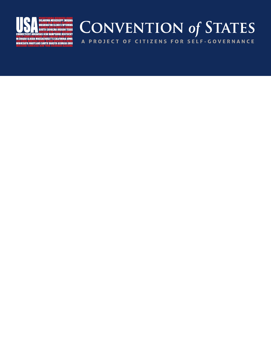 ![]() On September 11, 2014, some of our nation’s finest legal minds convened to consider arguments for and against the use of Article V to restrain federal power. These experts specifically rejected the argument that a Convention of States is likely to be misused or improperly controlled by Congress, concluding instead that the mechanism provided by the Founders is safe. Moreover, they shared the conviction that Article V provides the only constitutionally effective means to restore our federal system. The conclusions of these prestigious experts are memorialized in The Jefferson Statement, which is reproduced here. The names and biographical information of the endorsers, who have formed a “Legal Board of Reference” for the Convention of States Project, are listed below the Statement. The Constitution’s Framers foresaw a day when the federal government would exceed and abuse its enumerated powers, thus placing our liberty at risk. George Mason was instrumental in fashioning a mechanism by which “we the people” could defend our freedom— the ultimate check on federal power contained in Article V of the Constitution. Article V provides the states with the opportunity to propose constitutional amendments through a process called a Convention of States. This process is controlled by the states from beginning to end on all substantive matters. A Convention of States is convened when 34 state legislatures pass resolutions (applications) on an agreed topic or set of topics. The Convention is limited to considering amendments on these specified topics. While some have expressed fears that a Convention of States might be misused or improperly controlled by Congress, it is our considered judgment that the checks and balances in the Constitution are more than sufficient to ensure the integrity of the process. The Convention of States mechanism is safe, and it is the only constitutionally effective means available to do what is so essential for our nation—restoring robust federalism with genuine checks on the power of the federal government. We share the Founders’ conviction that proper decision-making structures are essential to preserve liberty. We believe that the problems facing our nation require several structural limitations on the exercise of federal power. While fiscal restraints are essential, we believe the most effective course is to pursue reasonable limitations, fully in line with the vision of our Founders, on the federal government. Accordingly, I endorse the Convention of States Project, which calls for an Article V Convention for “the sole purpose of proposing amendments that impose fiscal restraints on the federal government, limit the power and jurisdiction of the federal government, and limit the terms of office for its officials and for members of Congress.” I hereby agree to serve on the Legal Board of Reference for the Convention of States Project. Signed, Randy E. Barnett * Charles J. Cooper * John C. Eastman * Michael P. Farris * Robert P. George * C. Boyden Gray * Mark Levin * Nelson Lund Andrew McCarthy * Mark Meckler * Mat Staver Continued to back page *Original signers of The Jefferson Statement THE JEFFERSON STATEMENT ![]() (540) 441-7227 C ONVENTION of S TATES . COM Randy E. Barnett is the Carmack Waterhouse Professor of Legal Theory at the Georgetown University Law Center, where he directs the Georgetown Center for the Constitution. A graduate of Harvard Law School, he represented the National Federation of Independent Business in its constitutional chal- lenge to the Affordable Care Act. Professor Barnett has been a visiting professor at Harvard Law School, the University of Pennsylvania, and Northwestern. Charles J. Cooper is a founding member and chairman of Cooper & Kirk, PLLC. He has over 35 years of legal experience in gov- ernment and private practice, with several appearances before the United States Supreme Court. Shortly after serving as law clerk to Justice William H. Rehnquist, Mr. Cooper joined the Civil Rights Division of the U.S. Department of Justice in 1981. In 1985 President Reagan appointed Mr. Cooper to the position of Assistant Attorney General for the Office of Legal Counsel. John C. Eastman is the Henry Salvatori Professor of Law & Community Service at Chapman University Fowler School of Law. He is the Founding Director of the Center for Constitutional Jurisprudence, a public interest law firm affiliated with the Claremont Institute. Prior to joining the Fowler School of Law faculty in August 1999, he served as a law clerk with Justice Clarence Thomas at the Supreme Court of the United States. Mr. Eastman served as the Director of Congressional & Public Affairs at the United States Commission on Civil Rights during the Reagan administration. Michael P. Farris , head of the Convention of States Project, is the Chancellor of Patrick Henry College and Chairman of the Home School Legal Defense Association. He was the found- ing president of both organizations. During his ca- reer as a constitutional appellate litigator, he has served as lead counsel in the United States Supreme Court, eight federal circuit courts, and the appellate courts of thirteen states. Mr. Farris has been a leader on Capitol Hill for over thirty years and is widely respected for his leadership in the de- fense of homeschooling, religious freedom, and the preservation of American sovereignty. Robert P. George holds Princeton’s celebrated McCor- mick Chair in Jurisprudence and is the founding director of the James Madison Program in American Ideals and Institutions. He is chairman of the United States Commission on International Religious Freedom (USCIRF) and has served as a presidential appointee to the United States Commission on Civil Rights. Professor George is a former Judicial Fellow at the Supreme Court of the United States, where he received the Justice Tom C. Clark Award. C. Boyden Gray is the founding partner of Boyden Gray & Associates, in Was