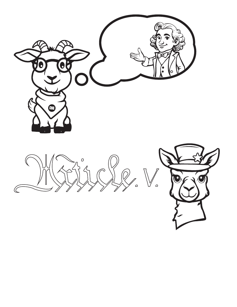 ![]() Page 1 COS Activity Book ACTIVITY BOOK ACTIVITY BOOK For Kids For Kids Adventures Of Liberty Llama and Danny Goat The Who was George Mason? ![]() Copyright©2024 Convention of States All Rights Reserved. Written By: Matthew May Illustration and Layout: Eric Greenwood ![]() Page 3 “Did you know,” Liberty the Llama asked her best friend Danny Goat, “That we are in FairFax CounTy, Virginia, the home of one of our counTry’s Founding Fathers? His name was GeorGe Mason.” Danny looked confused. “I’ve heard of GeorGe WasHinGton and thomas Jefferson, but who was GeorGe Mason?” “Come witH me to PhiladelPhia, Pennsylvania,” said Liberty. “I wilL telL you about Mr. Mason anD sHow you wHere he helPed make history.” ![]() Page 4 Liberty and Danny made their way through Maryland, Delaware, and Pennsylvania. Liberty told Danny all about Mr. Mason and how he wrote the Virginia Declaration of Rights. Mr. Mason believed that citizens have the right to change or reform government to improve it because the citizens are in charge. Start Finish “are we goinG to see WasHinGton, D.C., on our way?” asked danny. “no,” LiberTy smiled. “We don’t have to go to WasHinGton to get wHere we need to go.” Help us find our way to philadelphia. ![]() Page 5 “Wow,” exClaimed danny. “this is a neat builDinG, anD I see tHe Liberty BelL over tHere!” “this is wHere Mr. Mason made history,” said LiberTy, poinTing a hoOf. ”His state sent him here to helP forM tHe Constitution, our nation’s guide. He worked witH tHe otHer founDinG fatHers.” They arrived in Philadelphia. They stopped at Independence Hall. ![]() Page 6 Liberty showed Danny a copy of the Constitution. “That looks like tHe letTer V,” said danny. “yes,” LiberTy laughed, “but it also sTands for tHe number five.” LiberTy conTinued, “When Mr. Mason sHared his idea, tHe founDers tHougHt it was so amazinG tHat tHey didn’t even arGue about it. they put it rigHt in tHe Constitution.” “They argued about a lot of tHings, didn’t tHey?” chuckled danny. “They did,” LiberTy said. “but not tHis. This was too imporTanT. The people needed a way to cHange tHe Constitution and make our counTry betTer. They can use arTicle V.” “I see,” said danny. “But tHey were alL great men. What did Mr. Mason do tHat was so sPecial?” “Mason wanted alL of tHe american peopLe to have a say. He proposed articLe v. the peopLe coulD ask tHeir states to amenD – to imProve – tHe Constitution. see?” ![]() Page 7 1 2 3 4 5 6 7 8 9 10 11 15 16 17 18 19 20 21 22 23 24 25 26 27 28 29 30 12 12 12 13 14 “This has been great, liberTy!” said danny. “Where are we going nexT?” “perHaps a sTate capital,” repLied LiberTy. “We can talk about how arTicle V works.” Can You heLp Finish indePendence haLl? COnneCt The numbeRs ![]() 1. AMENDMENT 2. ARTICLE V 3. CAPITOL 4. CONSTITUTION 5. DANNY 6. FLAG 7. FREEDOM 8. GEORGE MASON 9. LAWS 10. LIBERTY 11. PATRIOT 12. PHILADELPHIA 13. PLEDGE 14. REPUBLIC 15. RIGHTS 16. STATES 17. STATESMAN 18. VOTE G E O R G E M A S O N D Y Y B U R I G H T S P L V J I V D G B C R P H I L A D E L P H I A B O E N D A N N Y B J W P P S D N P U A H S S J D G R K W Z K S U K M O U T X Q A W F G N S T B N E W I A Z Z R F L A G T I L B N C L T V S T L X P F A T I K D V W E R M I I L A R T U C B M Z F S Q W C B S T E E T W K E L A W S D L E J R E S I S T N Q H Y U U E R Z I D M O C M T V O T E M V T R O O A N A P L E D G E S W Y Q T M N P Y G C A P I T O L Y U D F Can you help me find all tHe words? |
