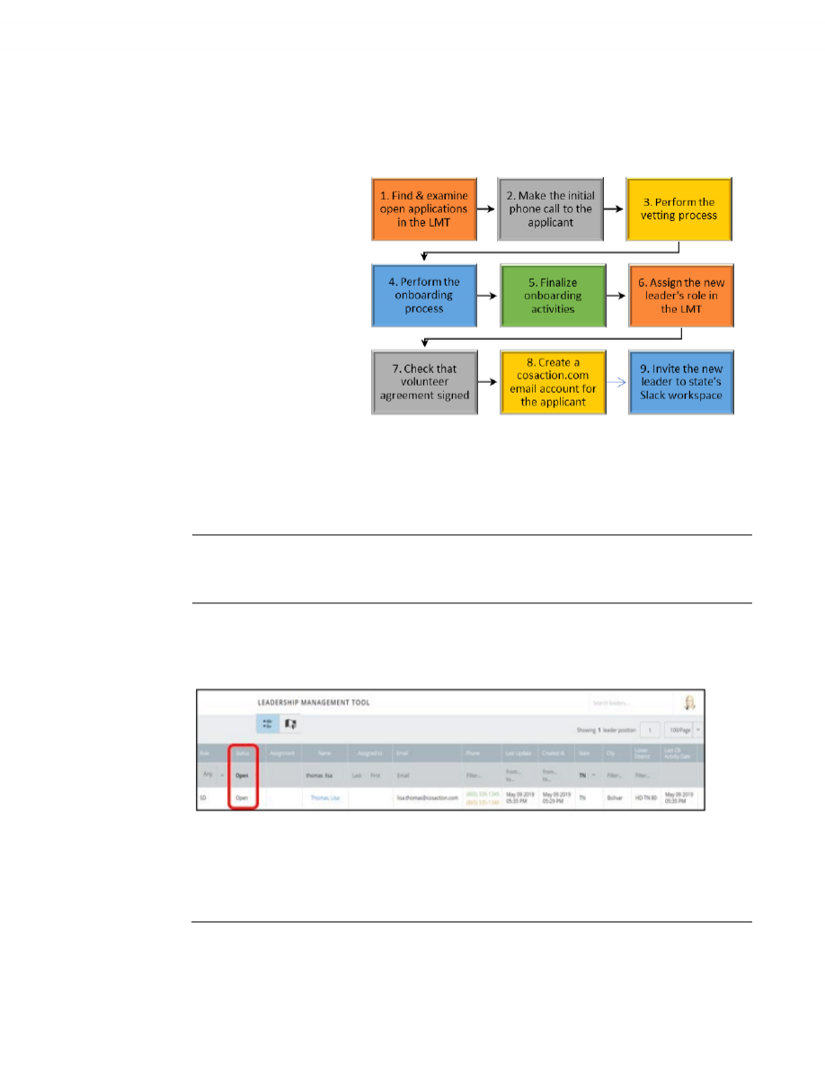 **TASK 1: FIND AND EXAMINE OPEN APPLICATIONS IN THE LMT ................................................................... 2 \\ ****TASK 1: FIND AND EXAMINE OPEN APPLICATIONS IN THE LMT (CONTINUED) .............................................................. 3 \\ ****TASK 1: FIND AND EXAMINE OPEN APPLICATIONS IN THE LMT (CONTINUED) .............................................................. 4 \\ ****TASK 2: MAKE THE INITIAL CALL ..................................................................................................................... 5 \\ ****TASK 2: MAKE THE INITIAL CALL (CONTINUED) ............................................................................................. 6 \\ ****TASK 2: MAKE THE INITIAL CALL (CONTINUED) ............................................................................................. 7 \\ ****TASK 3: PERFORM THE VETTING PROCESS ................................................................................................... 8 \\ ****TASK 3: PERFORM THE VETTING PROCESS (CONTINUED) ........................................................................... 9 \\ ****TASK 4: CONDUCT THE ONBOARDING PROCESS ........................................................................................ 10 \\ ****TASK 4: CONDUCT THE ONBOARDING PROCESS (CONTINUED) ............................................................................................... 11 **