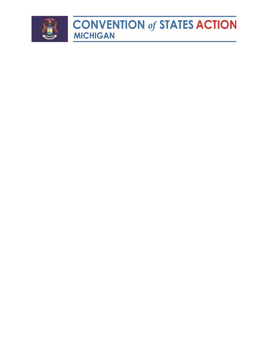 ![]() Pledge to Constituents As a current or future member of the Michigan State Legislature, I pledge to support the resolution applying to Congress for an Article V convention to propose amendments that would impose fiscal restraints on the federal government, limit the power and jurisdiction of the federal government, and set term limits for federal officials and members of Congress. I will vote in favor of such a resolution at every opportunity and do all that is within my power to secure its passage as soon as possible. Date: _______ Circle one: Candidate Legislator Circle one: House Senate District: _______ Name: __________________________ Signed: __________________________ |