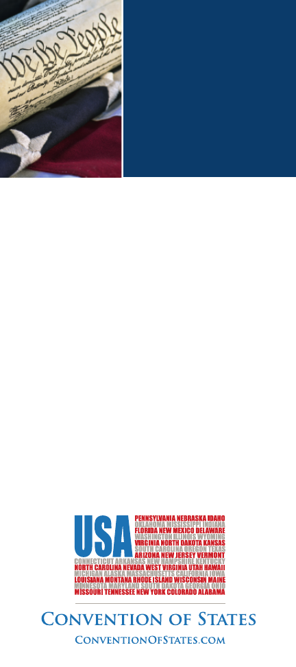 ![]() “On the application of the legislatures of two-thirds of the several states, [Congress] shall call a convention for proposing amendments.” — Article V, US Constitution Washington is Broken. Unelected bureaucrats have stripped states of their rightful decision-making authority. Consequently, the debt is out of control, regulations crush free enterprise, and our freedoms have been stolen. But We Have a Solution as Big as the Problem. Article V of the Constitution allows the states to call a Convention of States to propose constitutional amendments to limit federal spending, debt, and regulations. Amendments can also create better checks on the judiciary and restore the Constitution-as-written rather than the Constitution-as-interpreted by activist judges. ![]() Thirty-four states submit applications for a convention dealing with the same subject. Congress must set the date and time for the start of the convention. It has no other discretion. The convention drafts language for proposed amendments on the topics specified by the state applications. One state, one vote. When 38 states ratify an amendment proposal, it becomes part of the Constitution. Our Plan: Remember when “we, the people” had the power? Well, thanks to Article V, we still do. We are currently appointing district captains from 75% of the state house legislative districts in at least 40 states to each recruit 100 people from their respective districts. In turn, these 100 individuals will call or write their state legislators, voicing their support for the COS Project. In other words, we have more than a general philosophy. We have a well-organized strategy. Together, we can preserve liberty for future generations. Plus, this plan is safe! To find out why, visit conventionofstates.com/learn-why-convention-safe. Ready to go? You can volunteer and learn more about the COS Project at ConventionofStates.com. Convention of States is a project of (540) 441- 7 22 7 | C ONVENTION O F S TATES . COM Facebook.com/ConventionOfStates | Twitter.com/COSproject HOW IT WORKS: |