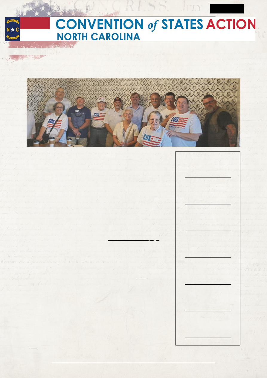 ![]() We’re already halfway through the summer! I hope you’re having a great season and taking time to appreciate the little things amidst our important work! I spent a week in Minnesota with the family and enjoyed watching my daughter jump off a boat a million times! I want to make sure that our communications team gets credit for their continuous drive and coming up with new ideas. It is not easy staying focused while so much chaos is happening at the national level. But as I said earlier, it is important to appreciate all of our moments. I've been committed to keeping you, our dedicated volunteers, well-informed. This month’s newsletter aims to better inform, organize, and set goals for you. Our goal is for you to be the most knowledgeable volunteer, enabling you to share this information effectively. One of the crucial task is writing Letters to the Editor regarding HJR 235. Follow this link for instructions on how to get involved. Below the highlighted article will include an article that was recently published. The team has been working on a comprehensive FAQ page. Bookmark it to stay updated on all the important information in North Carolina. You can find it here, and it will be continuously updated and improved. I and many others are very excited to see Jeff Groh back in action. He claimed he was going to ease back into things but as I suspected; he has been going full steam. He weekly maintains the volunteer resource page (its also included in the FAQ page). Last, but not least; it is important to continue the fight daily. So make sure you are following our socials which can be found here (also on the FAQ page-see the theme here?) As always, the comms team is here to help you be the most successful grassroot individual. Trivia Take Action Volunteer Spotlight Highlighted Blog Latest News State Comms Message Jesse Jensen,SCC In this newsletter you can expect: J u l y 3 1 , 2 0 2 4 ISSUE #3 MONTHLY NEWSLETTER ![]() Why North Carolina Needs Engaged Volunteers The overall mission of Convention of States is to build the largest conservative grassroots army ever assembled in this country, and with over 5M supporters we are making significant progress. Training that army to be citizen activists at all levels of government including local, state and national, is how we can save this country long-term. A goal within that larger mission is to utilize Article V of the U.S. Constitution to convene a Convention of the States, a tool our Founders provided that empowers We the People to bypass Congress to propose amendments that Congress will never do on their own. The process requires 34 state legislatures to pass a resolution that defines the scope of the convention, with 19 states having done so. We are more than halfway there. The scope would constrain the convention to propose amendments focused on term limits, imposing fiscal restraints and limiting the power and jurisdiction of the federal government. At its most basic level, it’s about federalism and returning power to the states where it belongs. The North Carolina COS resolution HJR 235\\ passed the NC House on March 8, 2023 with strong Republican support. The Senate has refused to act. We have one more opportunity after the November election for our Senators to do the right thing for future generations. In recent months, we have seen a steady decline in the engagement of our volunteers. Why is that happening and why is that important anyway? Those are the questions raised in this article. One reason may be that with the November election looming and Trump expected to be swept back into office, with leftist and progressive policies under siege everywhere and recent SCOTUS rulings that uphold an originalist interpretation of the constitution, many believe that “all is well”. That our worldview is winning. This could not be further from the truth. The progressive left driven by a hatred of the American experiment and our historical core values, a belief in the “living constitution”, and dominated by Marxists, will never stop. They are relentless and we must be as well. Our effort transcends any one president or election cycle. It transcends any one SCOTUS decision. When I speak at events and promote our effort, I often explain that when I put on my “political party hat”, it is absolutely about electing good candidates. But when I put on my “COS hat”, it’s about not trusting either political party to solve the big problems. . Both parties are vested in big government no matter what they say. The unsustainable +34T in debt and debt/GDP ratio of more than 100% is an example. It is up to us to rein in the federal government. History says they will never do that on their own. Another reason for a downturn here in North Carolina in volunteer engagement may be frustration with the process and not passing the COS resolution this past legislative session. I share that frustration having dedicated, just like many others, significant time and resources in all four legislative sessions spanning almost 8 years attempting to pass the COS resolution in North Carolina. But we cannot give up and go away. Those who oppose us in the North Carolina General Assembly believe that will eventually happen. We can wring our hands and complain all we want, but that accomplishes nothing. We must stay engaged for the future of our federal republican form of government. It is about future generations, not us. There is no other choice. John Q. Adams was the 6th president of the U.S. After he left office, he is the only former president to return to Congress. Why? Because he was passionate about ending slavery. Congress got so fed up with him, that they passed a gag order prohibiting him from talking about slavery. Leaving Congress one day, he was confronted by the media and asked why he continued to fight. He simply said: “Duty is ours, results are God’s”. He never saw the fruits of his labor, dying on House floor. But he mentored a yo