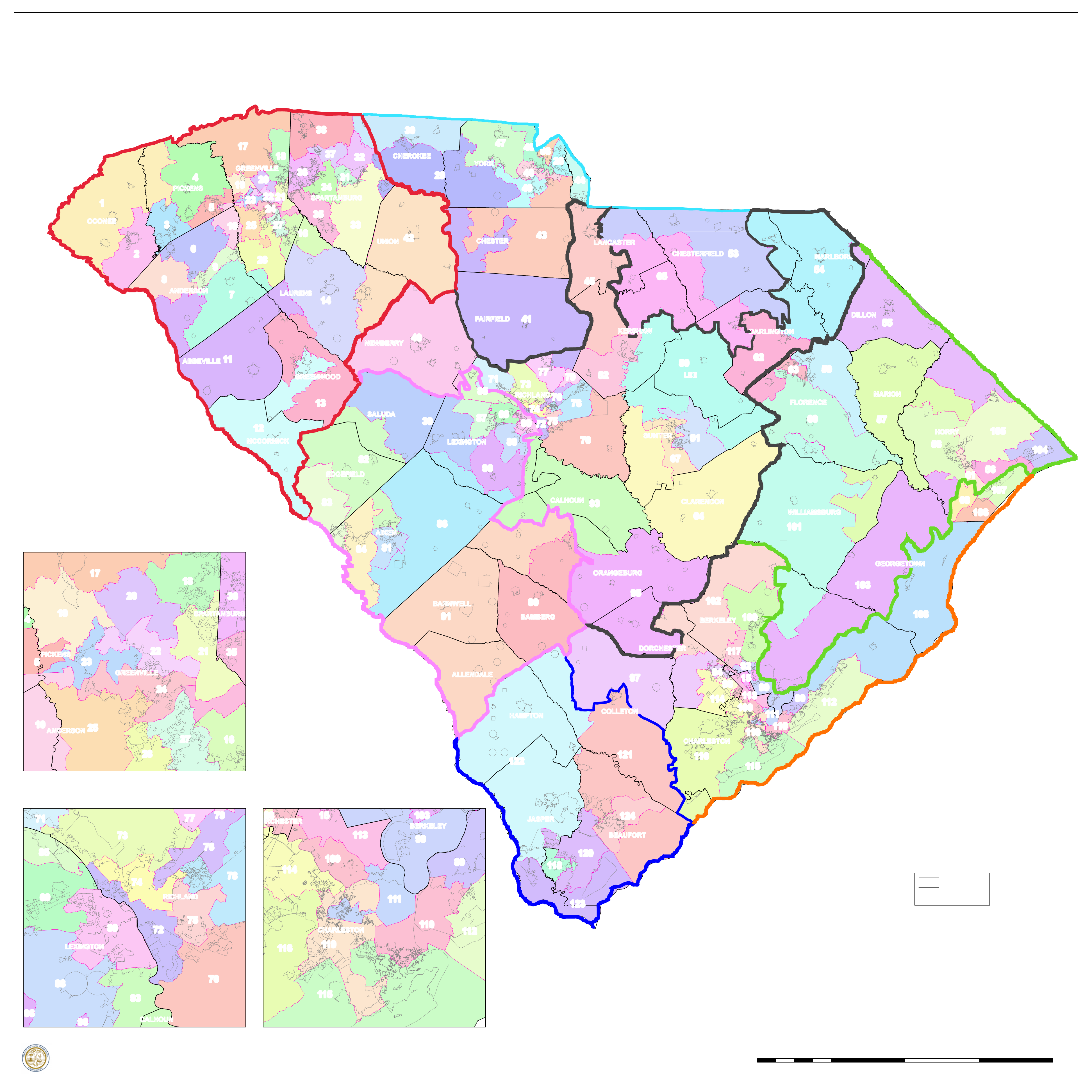![]() 91 1 64 41 122 86 95 50 57 54 103 11 53 101 42 40 65 55 93 121 97 90 108 39 12 43 82 7 29 60 4 14 45 13 70 102 2 116 17 62 6 58 33 8 30 59 123 83 105 84 47 112 52 38 96 3 115 51 100 120 28 5 35 16 67 73 124 78 104 114 18 36 87 71 81 49 32 88 56 34 10 44 77 25 99 107 68 69 106 118 89 19 80 9 85 48 37 26 46 61 63 119 117 31 20 21 113 27 24 72 66 110 76 22 79 94 74 15 92 75 23 109 98 111 HORRY AIKEN YORK BERKELEY COLLETON LEE CHARLESTON JASPER BEAUFORT SUMTER UNION ORANGEBURG OCONEE LAURENS RICHLAND FLORENCE KERSHAW GEORGETOWN FAIRFIELD ANDERSON LEXINGTON GREENVILLE CHESTER MARION WILLIAMSBURG PICKENS NEWBERRY HAMPTON SALUDA CLARENDON DILLON SPARTANBURG CHESTERFIELD BARNWELL ABBEVILLE LANCASTER EDGEFIELD DARLINGTON MARLBORO DORCHESTER CALHOUN BAMBERG CHEROKEE GREENWOOD ALLENDALE MCCORMICK 2020 South Carolina State House Districts Counties Municipalities ² 0 20 40 60 80 10 Miles Produced by Revenue & Fiscal Affairs March 2022 H.4493 25 19 17 10 20 21 18 24 27 22 16 23 36 5 35 28 4 GREENVILLE ANDERSON SPARTANBURG PICKENS 70 88 73 89 69 78 72 93 76 74 75 85 71 77 96 96 79 RICHLAND LEXINGTON CALHOUN 115 99 116 119 110 80 114 113 112 111 109 103 98 15 CHARLESTON BERKELEY DORCHESTER Greenville Area Columbia Area Charleston Area SC R01 Upstate SC R06 Aiken SC R05 Waxhaws SC R02 Midlands SC R03 N. Coastal SC R04 Mid-Coastal SC R07 S. Coastal |