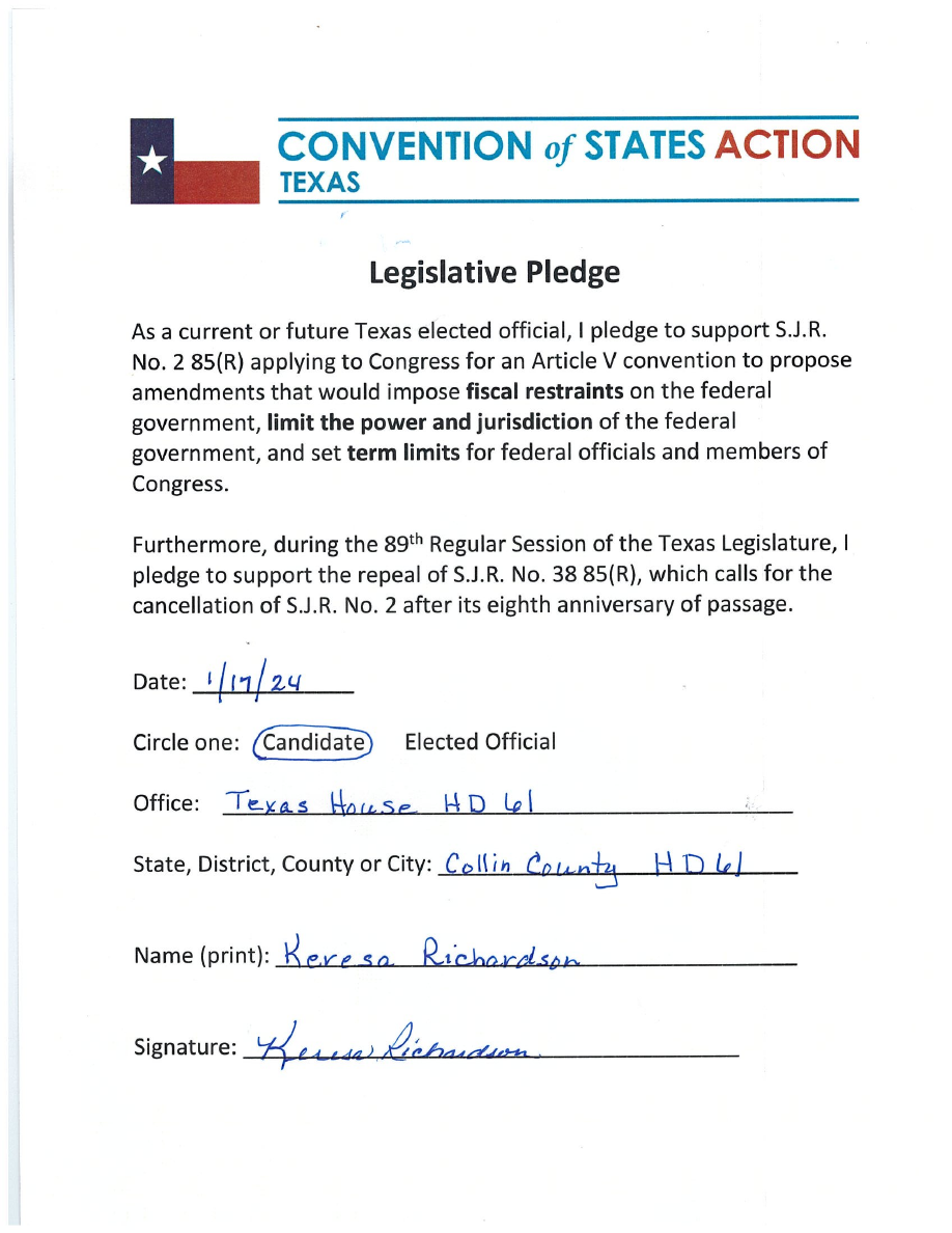 To view this on the COS website, click here texas-pledge-keresa-richardson