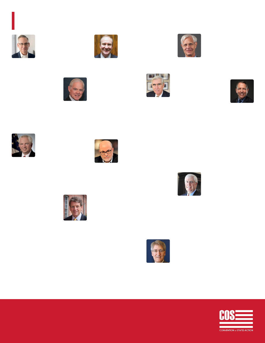 ![]() Signed, The J EFFERSON STATEMENT *Original signers of the Jefferson Statement W HEN THE NATION’S FINEST LEGAL MINDS gathered at the Jefferson Hotel in Washington, D.C. in 2014, they set out to consider arguments for and against the use of Article V to restrain federal power. But like the Founding Fathers in 1787, they soon realized that they agreed unanimously that the option of an Article V convention is safe, effective, and necessary. These experts, who subsequently signed the Jefferson Statement reproduced below, rejected the argument that an Article V convention is likely to be misused or improperly controlled by Congress. They shared the conviction that Article V provides the only constitutionally effective means to restore our federal system, and they formed the core of our Legal Board of Reference, whose names you can find on the opposite side of this document. T HE CONVENTION OF STATES mechanism is safe, and it is the only constitutionally effective means available to do what is so essential for our nation. The Constitution’s Framers foresaw a day when the federal government would exceed and abuse its enumerated powers, thus placing our liberty at risk. George Mason was instrumental in fashioning a mechanism by which “we the people” could defend our freedom—the ultimate check on federal power contained in Article V of the Constitution. Article V provides the states with the opportunity to propose constitutional amendments through a process called a Convention of States. This process is controlled by the states from beginning to end on all substantive matters. A Convention of States is convened when 34 state legislatures pass resolutions (applications) on an agreed topic or set of topics. The Convention is limited to considering amendments on these specified topics. While some have expressed fears that a Convention of States might be misused or improperly controlled by Congress, it is our considered judgment that the checks and balances in the Constitution are more than sufficient to ensure the integrity of the process. The Convention of States mechanism is safe, and it is the only constitutionally effective means available to do what is so essential for our nation—restoring robust federalism with genuine checks on the power of the federal government. We share the Founders’ conviction that proper decision- making structures are essential to preserve liberty. We believe that the problems facing our nation require several structural limitations on the exercise of federal power. While fiscal restraints are essential, we believe the most effective course is to pursue reasonable limitations, fully in line with the vision of our Founders, on the federal government. Accordingly, I endorse the Convention of States Project, which calls for an Article V Convention for “the sole purpose of proposing amendments that impose fiscal restraints on the federal government, limit the power and jurisdiction of the federal government, and limit the terms of office for its officials and for members of Congress.” I hereby agree to serve on the Legal Board of Reference for the Convention of States Project. Randy E. Barnett* Charles J. Cooper* John C. Eastman* Michael P. Farris* Robert P. George* C. Boyden Gray* Mark Levin* Nelson Lund Andrew McCarthy* Mark Meckler* Mat Staver ![]() Randy E. Barnett is a graduate of Harvard Law School and a professor at t he G eorgetow n University Law Center. He represented the National Federation of Independent Business in its constitutional challenge to the Affordable Care Act. Charles J. Cooper is a founding member and chairman of Cooper & K i rk, PL LC. A member of the Reagan Administration, Mr. Cooper has argued before the Supreme Court, and he spent much of his career defending constitutional rights as a top lawyer for the National Rifle Association. John C. Eastman is the Founding Director of the Center for Constitutional Jurisprudence, a public interest law firm affiliated with the Claremont Institute. Prior to joining the Fowler School of Law faculty, he served as a law clerk with Justice Clarence Thomas at the Supreme Court of the United States and served in the Reagan administration. Michael P. Farris is the Co-Founder and Senior Advisor at Convention of States Action. Mr. Farris was the founding president of the Home School Legal Defense Association, where he currently serves as Board Chairman. He became the founding president of Patrick Henry College in 2000, where he currently serves as Chancellor Emeritus. He has argued before the appellate courts of 13 states, eight federal circuit courts of appeals, and twice before the Supreme Court of the United States. Mr. Farris is largely known for his work in constitutional appellate litigation, religious freedom, homeschooling, and political advocacy. Andrew McCarthy is a bestselling author, a Senior Fellow at National Review Institute, and a contributing editor at National Review. Mr. McCarthy is a former Chief Assistant U.S. Attorney in New York. The late C. Boyden Gray was the founding partner of Boyden Gray & Associates, in Washington, D.C. Prior to founding his law firm, Ambassador Gray served as Legal Counsel to Vice President Bush (1981–1989), as White House Counsel in the administration of President George H.W. Bush (1989– 1993), and as counsel to the Presidential Task Force on Regulatory Relief during the Reagan Administration. Mark Levin is one of America’s preeminent constitutional lawyers and the author of several New York Times bestselling books including Men in Black (2007), Liberty and Tyranny (2010), Ameritopia (2012), and The Liberty Amendments (2013), which helped launch Convention of States Action onto the national political scene. In addition, he is the host of the nationally-syndicated radio program The Mark Levin Show and the top-rated Fox News show Life, Liberty & Levin. Mr. Levin has also served as a top advisor to several members of President Ronald Reagan’s